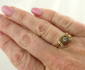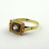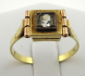 Československo 1929 - 1949. Čtrnáctikarátové zlato, syntetický leukosafír. Období a styl: art deco. Ryzost Au 585/1000, celková hmotnost 2,11 g. Velikost 59. Prsten ze čtrnáctikarátového bílého zlata s centrálním syntetickým leukosafírem zasazeným ve vyvýšené hraněné korunce. Prsten lze použít i jako zásnubní. Značeno: československý punc lvíček, ryzost 585 a mistrovská značka.