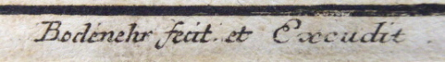 Německo, Augsburg 1704-1720. Mědirytina na papíru 16,4 cm x 18,3 cm. Značeno vpravo dole: Bodenehr, fecit et Excudit. V. Nahoře nápis: Die Cittadel zu Meyland s doplňujícím textem. Ze slavné knihy Gabriel Bodenehr - Europeans Macht und Pracht, ze série rytin zobrazujících pohledy na evropská města, jejich plány, pevnosti a hrady. Autor: Gabriel Bodenehr starší (1664-1758) byl německý kartograf a člen slavné rytecké a vydavatelské rodiny z Augsburgu. Jeho hlavním dílem byl "Atlas Curieux oder neuer und compendieuser Atlas" vydaný poprvé roku 1704. Celkový rozměr s paspartou 30 cm x 33 cm. Nerámováno. Z umělecké sbírky Ladislava Šalouna.