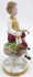 Bílý, ručně barevně malovaný a zlacený porcelán. V míšeňském stylu. Porcelánová figura ručně malovaného sedícího chlapce na sedátku stylizovaném do větve pokryté listy a držícího v jedné ruce list, jenž podává veverce. Na kulatém podstavci se zlacenými florálními motivy. Značeno zespodu: napodobenina značky míšeňské porcelánky modré zkřížené meče. Čína, konec minulého století. Výška 20 cm, průměr podstavce 8,5 cm.