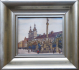 Olej na kartonu 19,5 x 23 cm. Signováno vlevo dole. Autor: Adolf Doležal (1898-1978) český malíř starobylých zákoutí města Hradec Králové a jeho okolí, známý též krajinomalbou oblasti Východních Čech. Pohled rušné Velké náměstí v Hradci Králové s barokním Mariánským (morovým) sloupem a kostelem Nanebevzetí Panny Marie. Široký klenutý stříbrný rám se sklem. Československo 1926 - 1930. Celkový rozměr s rámem 33 x 36,5 cm.