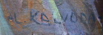 Čechy 1910 - 1920. Olej na kartonu 47 cm x 33 cm. Signováno vpravo dole. Autor: Alois Kalvoda (1875-1934) český malíř, krajinář, jeden z nejvýznamnějších žáků profesora Julia Mařáka. Celkový rozměr s rámem 56,5 cm x 42,5 cm. Impresionistická nálada s paprsky slunečního svitu prosvěcující zákrutu lesní cesty mezi kmeny stromů. V klenutém širokém odstupňovaném rámu s horní ručně řezanou lištou zdobenou plátkovým zlatem.