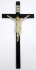 Střední Evropa 1900 - 1940. Dřevořezba, polychromie, patinováno. Výška 65 cm. Přiloženo osvědčení Národního památkového ústavu České republiky. Vysoký krucifix se z běžného pojetí vymyká umístěním titulu s písmeny IN/PJ. Hlava Ježíše s velmi drobným tělem je skloněná k pravému rameni a rána umístěna vlevo na hrudi je vyznačena červeně. Bederní rouška (perizonium) krémové barevnosti je uvázána na pravém boku. Dřevěný kříž černé barvy je lakovaný. Nahoře na zadní straně kříže oko na závěs.