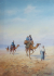 Egypt, Káhira 1890 - 1920. Akvarel na papíru 45,5 cm x 31,5 cm. Signováno vpravo dole a nápis Cairo (Káhira). Celkový rozměr s rámem 61 cm x 48 cm. Karavana s velbloudy putující vyprahlou pouští. Ve zlaceném rámu dekorovaném reliéfními florálními ornamenty, s paspartou a sklem.