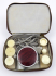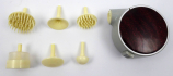 Československo, 60. až 80. léta minulého století. Nástavce z bakelitu, strojek, elektrický přívod. Masážní elektrický strojek značky ITES s šesti druhy bakelitových nástavců. Strojek slouží k masáži různých částí těla, především však obličeje. Podle historické reklamy zmírňuje tvoření vrásek. V originálním hnědém pouzdru na zip. Značeno na strojku: "ites".