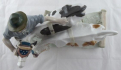 Bílý a ručně barevně malovaný porcelán. Ve stylu německé secese a nové věcnosti. Velké sousoší stojícího rolníka s krojovým kloboukem a dřeváky zapřahajicího dvojici krav do postroje s pluhem. Autor modelu Otto Pilz (1876-1934), název modelu Bauer mit Kühen, porcelánka Meissen (Míšeň). Německo, Míšeň 1920 - 1930. Značeno zespodu modrými zkříženými meči, ryté číslo modelu H 123. Výška 28,5 cm, šířka 42,5 cm.