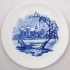 Míšeňský závěsný talíř se zámkem Moritzburg. Bílý a kobaltově modrý porcelán. Porcelánka Meissen, Míšeň. Zámek Moritzburg známý z filmové pohádky Tři oříšky pro Popelku (rok 1973) zachycený v zimním období evokujícím atmosféru této pohádky. Značeno zespodu: modré zkřížené meče. Německo, Míšeň, rok 1971. Průměr 26 cm. Vzadu úchyt na závěs.