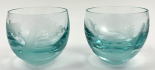 Československo, Karlovy Vary 1950 - 1980. Barevné ručně foukané a ryté sklo. Sklárna Moser. Název kolekce: Culbuto. Autor návrhu: Rudolf Eschler v roce 1935. Výška 4,5 cm. Vyhledávaná nápojová souprava Culbuto v typické barevnosti Moser: beryl. Kulovitého tvaru s tenkostěnnou horní částí přecházející do masivní podstavy. Minimalistického designu kladoucího maximální nároky na přesnost a kvalitu provedení. Zdobené rytinou bažanta a koroptve na mýtině.