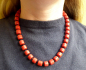 Itálie, Cassano Magnano, 60. až 70. léta minulého století. Přírodní mořské korály, osmnáctikarátové bílé zlato a mačkané černé skleněné korálky. Ryzost Au 750/1000, celková hmotnost 70,30 g. Délka 495 mm. Design: Guido Montalbetti, Cassano Magnano, Varese, Itálie. Designový náhrdelník z pravých mořských korálů špalíčkového tvaru, jež jsou střídány v článcích drobnými mačkanými skleněnými korálky černé barvy. Část zapínání z osmnáctikarátového bílého zlata s bezpečnostní pojistkou. Značeno: platný český punc kohout, ryzost 750 a mistrovská značka.