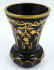 Československo, minulé století. Bezbarvé silnostěnné ručně broušené sklo vrstvené tmavě rubínovým sklem a zlacení. V biedermeierovém stylu. Výška 14 cm. Ručně broušený pohár z bezbarvého silnostěnného skla velmi interesantní tmavě rubínové barevnosti zdobený zlacenými festony a vlnkami.