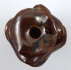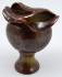 Barevný glazovaný porcelán. Autor: Jindřiška Radová (1925-2021). Nízká porcelánová vázička stylizovaná do podoby květu s otvorem na jednu květinu. Značeno zespodu: ručně psaným monogramem autorky J.R. s datací 77. Opravený horní okraj. Československo, rok 1977. Výška 8,5 cm, průměr horního vnějšího okraje 7 cm.