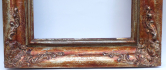 Československo 1920 - 1940. Dřevo, červená patina na stříbrném podkladu. Světlost 27 cm x 35 cm. Celkový rozměr 48 cm x 55 cm. Klenutý rám s velkými reliéfními ozdobami v rozích. Vnitřní zakulacená lišta.