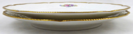 Bílý, barevný a zlacený porcelán. V rokokovém stylu. Rosenthal, vzor Sanssouci z roku 1929. Dva bílé porcelánové talíře s reliéfním rokokovým ornamentem rokaje, mřížky a květin. Barevné svazečky květin a zlacený okraj s granulací. Značeno zespodu: jubilejní značka Rosenthal k padesátiletému výročí založení firmy. Německo, Rosenthal, rok 1929. Průměr 20 cm.
