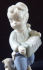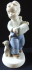 Bílý a ručně barevně malovaný porcelán. Soška stojícího chlapce hrajícího na harmoniku, s bílou kšiltovkou a kapesníkem, u nohou se sedícím psem. Kruhový podstavec, s vlasovou trhlinkou z výroby. Značená zespodu - zelená tištěná značka Made in Czechoslovakia, vtlačená čísla a písmena. Royal Dux, Duchcov, Československo, Duchcov, od roku 1945. Výška 17 cm.