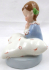 Bílý a ručně barevně malovaný porcelán. Porcelánka Royal Dux, Duchcov. Porcelánová barevná soška sedící holčičky v noční košilce přikryté polštářem. Světlemodrý kruhový podstavec. Značeno zespodu: Royal Dux, Czechoslovakia, vtlačená čísla a značka malíře. Československo, Duchcov 1920 - 1980. Výška 11,5 cm, šířka 9 cm, průměr podstavce 8 cm.
