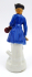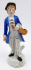 Bílý, ručně barevně malovaný a zlacený porcelán. Porcelánová figura houslisty přicházejícího na své vystoupení v dlouhém společenském kabátci modré barvy. Ručně zlacené části hudebníkova oděvu i boční strany kulatého stylizovaného podstavce. Neznačeno. Royal Dux, Duchcov ?. Československo, minulé století. Výška 21,5 cm.