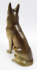 Československo, Duchcov 1970 - 1992. Bílý a ručně barevně malovaný porcelán. Porcelánka Royal Dux, Duchcov. Výška 22 cm. Porcelánová figura sedícího vlčáka. Ručně malované oči i tlama s vousy. Ve výborném stavu. Značeno zespodu: originální růžový nálepek z porcelánové hmoty, značka firmy a vtlačené číslo.