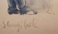 Československo 1920 - 1940. Akvarel na papíru 22 cm x 14,5 cm. Signováno vpravo dole. Název díla v dolní části uprostřed. Celkový rozměr 26 cm x 18,5 cm. Postava chlapce stojícího v kloboučku a zachumlaného do krátkého kabátku a šály. Na zadní straně portrétní studie dívenky tužkou. Ve zlatém originálním rámu se sklem.