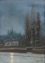 Československo 1910 - 1935. Olej na kartonu 50,5 cm x 35,5 cm. Signováno vpravo dole. Autor obrazu: Tomáš Šrámek (nar. 1885). Celkový rozměr s rámem 60,5 cm x 46 cm. Poetický pohled z Karlova Mostu na potemnělou Prahu s dominantou Pražského hradu. Paprsky plynových lamp intimně osvětlující sněhovou pokrývku. Stříbrný rám s vlnitým ornamentem.