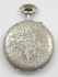 Stříbro. Ryzost Ag 800/1000. Celková hmotnost 52,75 g. Přiloženo osvědčení Puncovního úřadu České republiky. Stříbrné dvouplášťové kapesní hodinky zdobené reliéfním florálním ornamentem s květy, kartušemi a rokaji. Bílý emailový ciferník s ručně malovanými černými a červenými arabskými číslicemi. Značené na stroji: Brevet, helvétský kříž a čísla. Funkční. Vzhledem ke stáří hodinek bez záruky přesnosti chodu a dlouhodobé funkčnosti. Švýcarsko 1890 - 1910. Průměr 50 mm.
