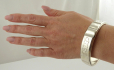 Československo 1941 - 1949. Stříbro. Ryzost Ag 900/1000, celková hmotnost 31,50 g. Průměr 70 mm. Stříbrný širší kruhový náramek s gravírovanými florálními motivy doplněnými o punktování. Značeno: československý punc šachovnice, ryzost 900 a mistrovská značka.