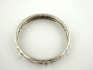 Stříbro. Ryzost Ag 900/1000, celková hmotnost 13,30 g. Stříbrný náramek ve tvaru kruhu zdobeným gravírovaným ornamentem a obloukovitě tvarovanou čelní pohledovou stranou. Značeno platným československým puncem, ryzostí 900, mistrovskou značkou. Československo 1929 - 1949. Průměr: 63 mm.