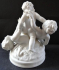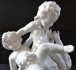 Bílý neglazovaný porcelán (biskvit). Sousoší tří nahých dětí přetahujících se o girlandu, s reliéfně tvarovanými květy a listy. Kruhový podstavec s vodorovným ornamentálním pásem. Horní část soklu klenutá, zdobená reliéfním dekorem travnaté plochy. Značená zespodu: značka výrobce. Německo, Unterweissbach 1977 - 1985. Výška 16 cm, šířka 13,5 cm.