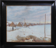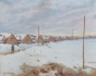 Sibiř 1915 - 1918. Olej na kartonu 44 cm x 58 cm. Signováno vlevo dole. Celkový rozměr s rámem 63 cm x 79 cm. Autor: Hilar Václavek (1884-1951) český malíř, krajinář, ilustrátor a grafik bojující za první světové války v legiích. Jeho pobyt na Sibiři v Tobolské gubernii ho inspiroval k vytvoření obrazu. Kolonie dřevěných domků s cestou lemovanou sněhovými závějemi. Originální černý leštěný rám se zlatou tenkou vnitřní lištou.