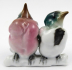 Německo, Volkstedt 1919 - 1945. Bílý a ručně barevně malovaný porcelán. Karl Ens, Volkstedt. Výška 6,5 cm. Porcelánové něžně jemné sousoší dvou pestrobarevných načepýřených ptáčků sedících na podstavci ve tvaru stylizované větvičky. Značeno zespodu: značka výrobce a ručně psaná čísla.