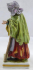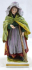 Bílý, ručně barevně malovaný a zlacený porcelán. V romantickém stylu. Ernst Bohne & Söhne, Volkstedt, Rudolstadt. Stojící žena v pestrém barevném oblečení s širokým čepcem na hlavě, opírající se o hůl. Jednu svou ruku nataženou v gestu žebrání. Obdélný podstavec. Značeno vzadu na soklu modrou značkou. Německo, Rudolstadt 1900 - 1930. Výška 16,5 cm.