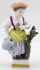 Bílý, ručně barevně malovaný a zlacený porcelán. V rokokovém stylu. Älteste Volkstedter Porzellanmanufaktur. Porcelánová figurka stojící dívky, zahradnice, vedle kmene s listy. V pravé ruce s konvičkou, v levé ruce drží štěpařský nůž. Čtvercový podstavec se zlatým pásem. Značeno zespodu: modrá písmena s korunou a letopočtem 1762, ručně psané číslo malíře. Německo, Volkstedt, minulé století. Výška 11 cm.