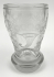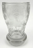 Střední Evropa, minulé století. Bezbarvé ručně broušené sklo. Výška 15 cm. Vyšší sklenice ze silnostěnného skla s nápisy v němčině - Liebe, Glück (Láska, Štěstí). Sklenice dekorovaná ručně broušeným rohem hojnosti, kartušemi s mřížkou, planoucími srdci i vycházejícím sluncem.