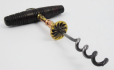 Střední Evropa, první polovina minulého století. Ocel, leštěná mosaz, dřevo. Výška bez očka na závěs 13,5 cm, výška s očkem na závěs 15,5 cm, šířka 9 cm. Klasická vývrtka z oceli se zdobnou částí z reliéfně tvarované leštěné mosazi a dřevěným držadlem s dekorem drážek. Na horní části držadla kovové očko na případné zavěšení.