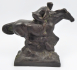 Československo 1930 - 1950. Patinovaný bronz. Signováno nezřetelně na plintě. Autor: akademický sochař Karel Zentner (1891-1963). Výška 25 cm, šířka 31 cm, hloubka 13 cm, rozměr podstavce 18,5 cm x 9 cm. Studie jezdecké sochy z patinovaného bronzu bez koňské levé přední nohy. Muž v jezdeckém úboru zachycený s koněm s vlající hřívou při cvalu. Na nízkém reliéfním podstavci obdélného tvaru.